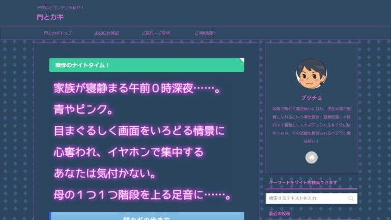 同人エロゲー、攻略、更新<並> / 2020~、レビュー、雑記型 門とカギ キャッチコピー アダルトコンテンツ紹介! サイト概要 同人エロゲ、特にファンタジー系RPGをメインとする攻略サイトです。門とカギ 掲載内容 同人エロゲの攻略サイトの多くはレビューサイトを兼ねていますが、本サイトに感想やレビューはほとんどなく、簡単な紹介に徹しています。攻略記事は「メインストーリー」「サブクエスト」「エロシーン回収」など目的別で分け、画像を多用する等わかりやすくする工夫が見られます。取り上げられるのは人気が高くてボリュームのあるRPGが多いです。 サイト/記事の見やすさ カテゴリーと検索機能へのアクセスが悪く、特にスマホはサイト下部までスクロールしないといけません。サイト構造も一般的なものとは異なるため、少し戸惑うでしょう。攻略記事は目次付きのうえに画像を多用しており、他サイトに比べ非常に見やすいです。 こんな人/こんな時にオススメ ストーリーに沿った進め方を、画像を使って解説しているのがポイント。単に必要条件を記載するだけでなく、具体的な場所などを示しているので、迷う心配がほとんどありません。謎解きも解答を用意してくれているので、ネタバレしても構わないから面倒を省きたい人にオススメのサイトです。門とカギ タグ/カテゴリー 【タグ】同人エロゲー、攻略、更新<並> 【カテゴリー】2020~、レビュー、雑記型 リンク 門とカギTwitter