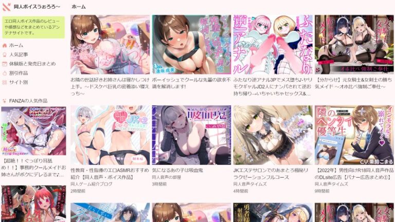 更新<多>、音声作品 / 2020~、レビュー、雑記型 同人ボイスうぉろろ~ キャッチコピー エロ同人ボイス作品のレビューや感想などをまとめているアンテナサイトです。 サイト概要 キャッチコピーの通り、エロ同人の音声作品に関するレビューサイトをまとめているサイトです。姉妹サイトに同人エロゲレビューを専門とするまとめサイトや、管理人の趣味関連のサイト全般をまとめるサイトも存在します。同人ボイスうぉろろ~ 掲載内容 サイトに組み込まれたレビューサイトであれば、更新状況をまとめて確認できます。22年10月時点では動いているサイトはおよそ10。サイト自体にはレビュー記事は存在しません。 サイトの見やすさ・利便性 画像の割合が多くて少し見づらいですが、サイトの構成はシンプルなため迷うことはないでしょう。 こんな人/こんな時にオススメ 各サイトの更新状況がひと目でわかるので、流行りの作品を知りたい人にはピッタリです。扱われているサイトのレベルも高いものばかりで、初心者から上級者までオススメできます。しかし音声作品のレビューサイトは数が少ないため、サイトの真価は発揮できていない印象。 リンク 同人ボイスうぉろろ~Twitter