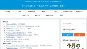 管理人おすすめサイト 当サイトで紹介しているサイトの中から管理人のおすすめサイトをピックアップしました。 各項目ごとに該当サイトを抜き出しているので重複もあります。 目録 【 マイナー作品掲載 】 ◆同人ゲーム速報!◆サブカル案内所◆レメラボ◆111のデジ同人感想◆フリーソフト超激辛ゲームレビュー◆ゲーム中毒R18 ~エロ同人ゲームの攻略・感想~◆残酷インディー地獄変 【 独自コンテンツ 】 ◆OUTERLOG◆DOUJINDB◆ErogameScape -エロゲー批評空間-◆同人Reviewers 【 良質なレビュー 】 < トレンド型 >◆同人ゲーム感想.com◆同人ゲーム速報! < 特化型 >◆ふたなりと戦闘エロが好きだから◆いしゅぷれ -異種姦インプレッション- < 雑記型 >◆今更だけどエロゲしようぜ!◆陵辱寝取られ同人エロゲーレビュー◆堕女ブログ◆残酷インディー地獄変 【 良質なニュース/まとめ 】 ◆panpan◆ゲーム中毒R18 ~エロ同人ゲームの攻略・感想~ 【 1000記事以上 】 ◆panpan◆暇だからゲームでもするか◆残酷インディー地獄変◆レメラボ◆111のデジ同人感想 【 新進気鋭(20年以降開設) 】 ◆ふたなりと戦闘エロが好きだから◆トイレ覗きゲームまとめ◆サブカル案内所◆OUTERLOG マイナー作品掲載 ◆同人ゲーム速報! 全体の3~4割がマイナー作品。販売数が3桁に満たない作品でも製品版レビューがあります。同人ゲーム速報!紹介記事 ◆サブカル案内所 マイナーなエロゲ中心のレビューサイト。海外製のエロゲやDLsite未登録の体験版、フリーのエロゲが多め。サブカル案内所紹介記事 ◆レメラボ 埋もれ気味ですが、マイナー作品のレビューも相当数あります。同人ゲーム+同人音声のレビュー・攻略サイト レメラボ紹介記事 ◆111のデジ同人感想 体験版を中心に、他サイトで扱いの無い作品が紹介されています。111のデジ同人感想紹介記事 ◆フリーソフト超激辛ゲームレビュー 埋もれがちな古い作品がたくさん。フリーソフト超激辛ゲームレビュー紹介記事 ◆ゲーム中毒R18 ~エロ同人ゲームの攻略・感想~ 2017年以降、毎年マイナー作品をまとめ記事にして紹介しています。ゲーム中毒R18 ~エロ同人ゲームの攻略・感想~紹介記事 ◆残酷インディー地獄変 Steamの日本語未対応作品や10年以上前のエロゲが多数掲載。残酷インディー地獄変紹介記事 独自コンテンツ ◆OUTERLOG エロゲを動画で紹介する珍しいサイト。編集技術も高い。OUTERLOG紹介記事 ◆DOUJINDB DLsiteとFANZAで価格比較ができるサイト。セール情報が便利。 DOUJINDB 紹介記事 ◆ErogameScape -エロゲー批評空間- ユーザーが作品をレビュー・評価を投稿するサイト。多角的な意見をもとに下された評価を確認できます。ErogameScape -エロゲー批評空間-紹介記事 ◆同人Reviewers DLsite販売作品専門のレビュー投稿サイト。DLsiteでは公開されない批判的な意見でも投稿できます。同人Reviewers紹介記事 良質なレビュー < トレンド型 > ◆同人ゲーム感想.com 新作の体験版を超詳しく紹介。読むだけで作品を8割理解できます。 同人ゲーム感想.com 紹介記事 ◆同人ゲーム速報! 画像中心の記事で読みやすく、情報量も多め。同人ゲーム速報!紹介記事 < 特化型 > ◆ふたなりと戦闘エロが好きだから エロシーンの趣向について詳しく書かれています。特にふたなりに対するこだわりが強い。ふたなりと戦闘エロが好きだから紹介記事 ◆いしゅぷれ -異種姦インプレッション 異種姦作品を幅広くレビュー。エロシーンへの言及が異常に細かい。 いしゅぷれ -異種姦インプレッション 紹介記事 < 雑記型 > ◆今更だけどエロゲしようぜ! 商業エロゲのレビューサイト。全体的に初心者向けで読みやすい。今更だけどエロゲしようぜ!紹介記事 ◆陵辱寝取られ同人エロゲーレビュー 作品の良し悪しを率直に書くので、大変参考になります。陵辱寝取られ同人エロゲーレビュー紹介記事 ◆堕女ブログ ネタバレを一切考慮せず、一番エロいスクショを惜しみなく掲載。思わず購入しそうになるパワーがあります。堕女ブログ紹介記事 ◆残酷インディー地獄変 ゲーム性重視の激辛レビュー。他のエロゲレビューとは一線を画す評価基準はかなり貴重です。残酷インディー地獄変紹介記事 良質なニュース/まとめ ◆panpan 2万記事以上という情報量で二次元から三次元までカバー。panpan紹介記事 ◆ゲーム中毒R18 ~エロ同人ゲームの攻略・感想~ 新登録の体験版やCi-enの更新情報が毎日まとめられます。ゲーム中毒R18 ~エロ同人ゲームの攻略・感想~紹介記事 記事多数 ◆panpan 「エロゲ」と検索するだけで600記事以上ヒットします。panpan紹介記事 ◆暇だからゲームでもするか 製品版の同人エロゲレビューが1000記事を超えている老舗サイト。暇だからゲームでもするか紹介記事 ◆残酷インディー地獄変 エロゲの体験版だけで1000記事以上。作品の評価も細やか。残酷インディー地獄変紹介記事 ◆レメラボ 年平均300前後の記事がアップされます。同人ゲーム+同人音声のレビュー・攻略サイト レメラボ紹介記事 ◆111のデジ同人感想 同人エロRPGを主体に2000記事以